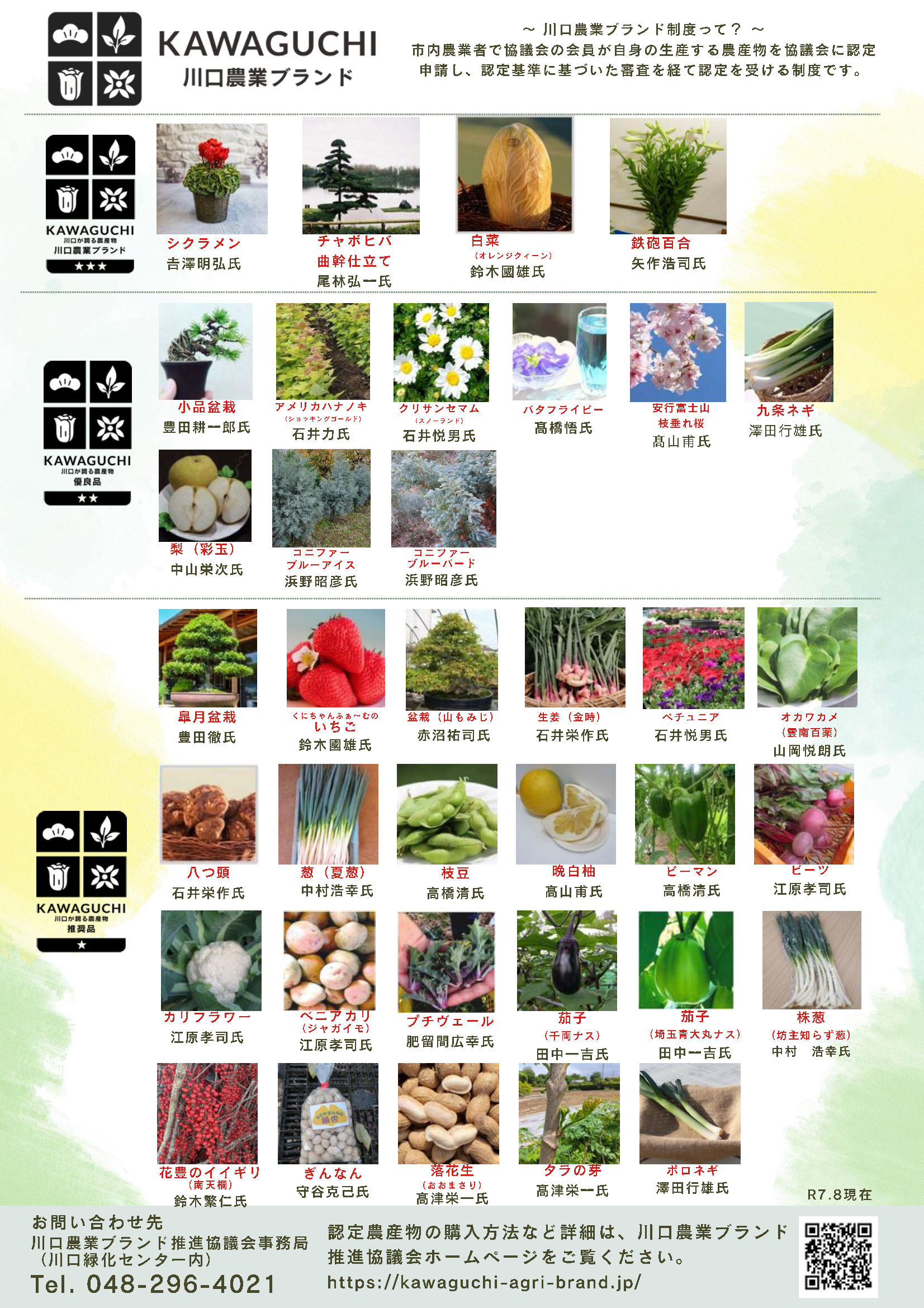 川口農業ブランド認定農産物一覧・季節カレンダー
